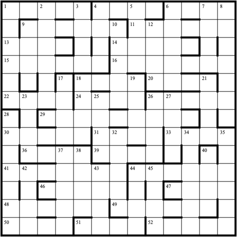 4. Nothing to see here. A cover-up has been arranged by the team's fifth member, a non-MITropolitan femme fatale who is an old hand at cunning nighttime plans; her (apt-sounding) name is one of the (b) answers. In clue order, starting at her (b) clue and looping around to the beginning, read (separately) the (b) clues' mth letters, pth letters, qth-from-last letters, and nth-from-last letters (using m and n from 1 and p and q from 2) to see what will hide the evidence from 3. If that seems mathematically impossible, alter the middle word of the caper location by undoing all four unused answer alterations (first the two from 1, then the two from 2) to see the location's former name, which makes it possible. Finally, for each (b) line, copy the letter at its end to the position just outside the grid where that line would reach if extended; counterclockwise around the grid, starting where the (c) line ends, these will say what about the location makes it possible (and also say who can help uncover the truth).